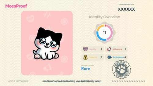 MocaProof includes a virtual companion named Mocat, a cute and friendly character within the Mocaverse. Mocat provides users of MocaProof with a personal visualization of their verified credentials. As a user verifies more credentials through MocaProof, their Mocat evolves with different traits that represent the growth and rarity of the user’s verified data. The evolution of a Mocat will also unlock rewards, depending on the Mocat’s rarity.